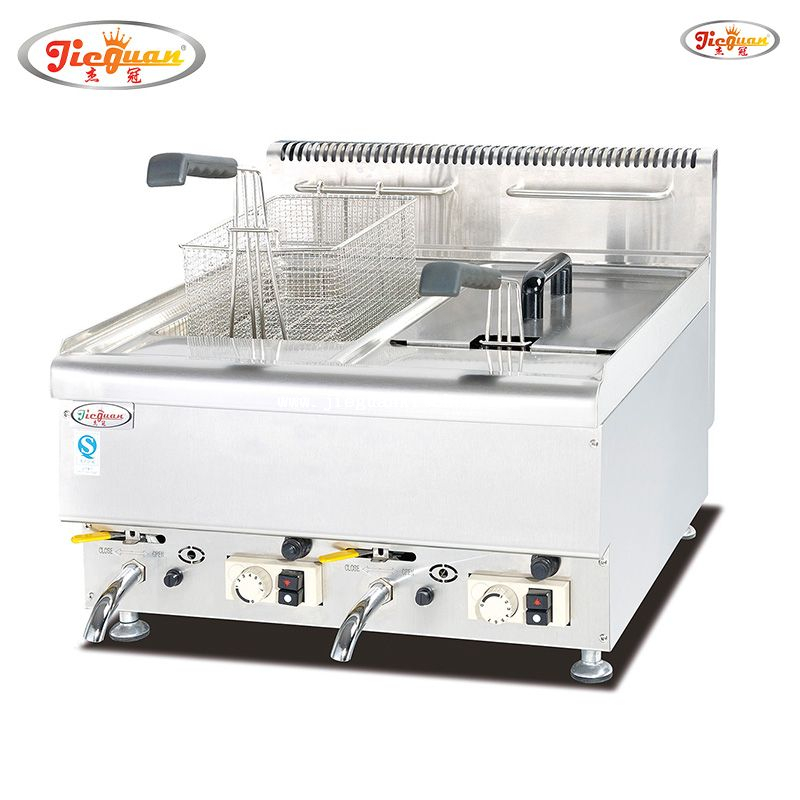 Газовая фритюрница с двумя баками емкостью 14 литров (л) — это коммерческий кухонный прибор, предназначенный для жарки продуктов во фритюре. Обычно емкость каждого резервуара составляет 7 литров, что делает его подходящим для ресторанов, кафе и других предприятий общественного питания, которым необходимо эффективно готовить разнообразные жареные блюда.